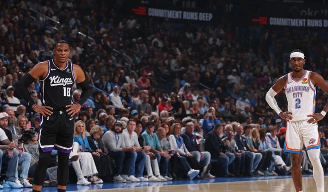 本赛季的前两次交手,面对威少和国王的防守,亚历山大都交出了30+的数据表现。